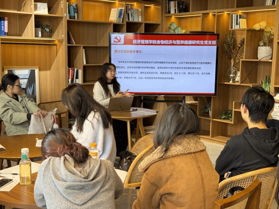 经验分享环节,各党支部书记结合自身工作实践分享经验做法。资源与环境学院植物养分管理研究生党支部书记罗欣欣围绕暑期社会实践内容,介绍依托专业优势,强化身份意识,将实践热情转化为日常支部活动参与动力的经验。资源与环境学院农产品品质与安全研究生党支部书记朱震昊介绍支部通过每月羽毛球师生融乐活动、每学期专题宣讲活动、每年柑橘品鉴大会等特色活动,让党员在实践中增进交流。经济管理学院博士研究生第一党支部书记万浩然表示,支部工作力求“形式上求活”,通过建立学习小组和充分利用“学习强国”平台,丰富党员日常学习活动。经济管理学院食物经济与营养健康研究生党支部书记闫薇则从组织建设、理论学习、特色活动三个维度,介绍支部“月度支部工作汇报”机制、党小组轮值领学模式、基层调研经验等工作,推动党建与科研双向赋能。