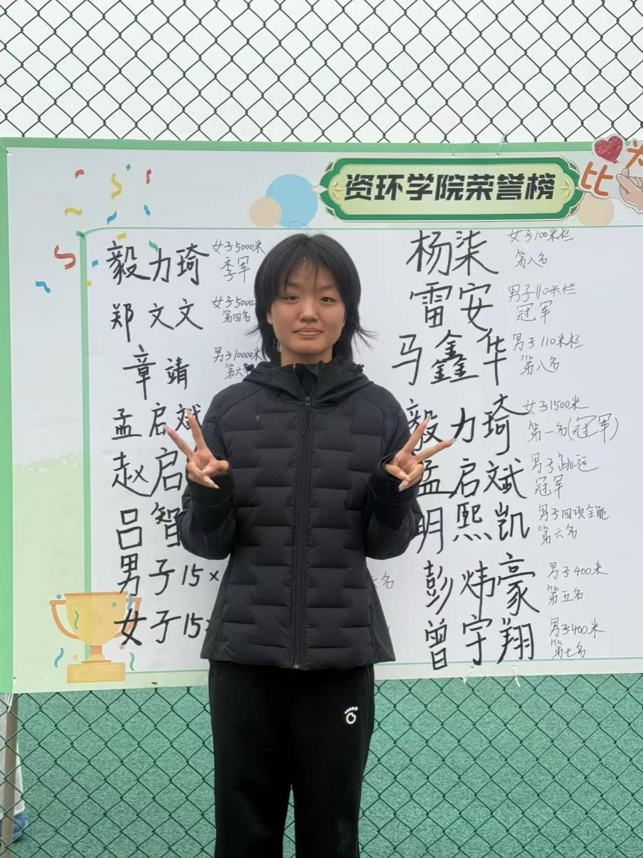 毅力琦同学此次在省赛中的出色表现,不仅充分展示了她个人平日刻苦训练、挑战极限的竞技风采,也为我院学子树立了顽强拼搏、争创一流的榜样。长期以来,我院高度重视学生的全面发展,积极鼓励学生在各类文体赛事中锻炼自我。毅力琦同学的佳绩,是我院学子坚持德智体美劳全面发展的生动缩影,也将激励更多资环学子在未来的学习和各项竞赛中奋勇争先。