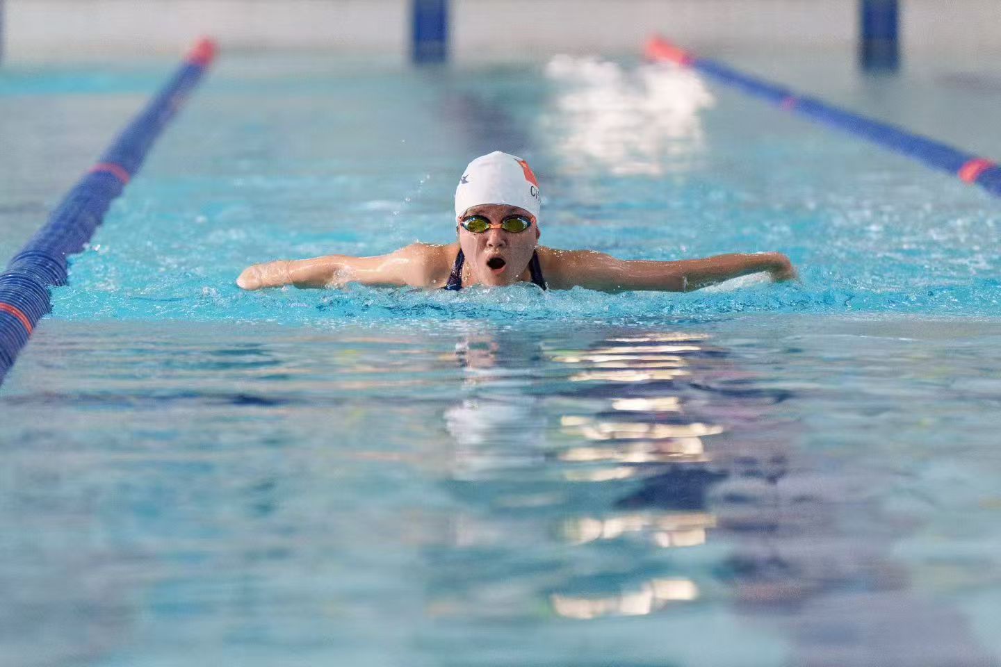 本届锦标赛共吸引了包括武汉大学、华中科技大学在内的20所高校、近300名运动员参与。在为期两天的激烈竞争中,毅力琦同学参加了多项高强度赛事的角逐。在女子甲组200米蛙泳和100米蝶泳两个高难度单项决赛中,毅力琦面对省内众多实力选手的挑战,始终保持稳健的竞技节奏。在200米蛙泳中,她凭借扎实的技术功底和出色的体能分配,一路劈波斩浪,最终摘得银牌;而在随后进行的100米蝶泳决赛中,她再次展现了强劲的爆发力,再夺一枚银牌。除个人单项实现突破外,毅力琦同学在集体荣誉面前同样当仁不让。在备受瞩目的男女甲组4×50米自由泳接力决赛中,她与队友默契配合、奋力搏击,最终助力我校接力队夺得该项目亚军。
