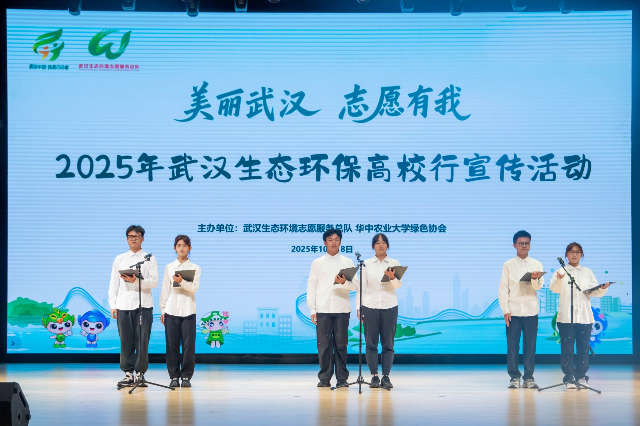 10月18日上午,“美丽武汉 志愿有我”2025年武汉生态环保高校行宣传活动在我校大学生活动中心举行。活动由武汉市生态环境局指导,武汉生态环境志愿服务总队与华中农业大学绿色协会联合主办,吸引了在汉多所高校的200余名大学生志愿者参与,共同展现青年一代投身生态文明建设的责任担当。
