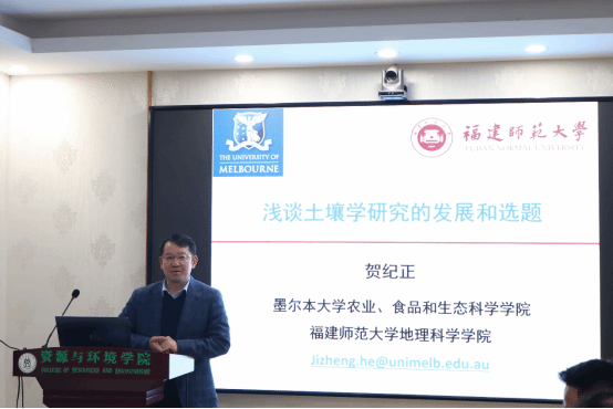 2026年1月19日,澳大利亚墨尔本大学贺纪正教授应邀来校出席105期“生态环境与绿色发展高端论坛”,与资源与环境学院师生交流探讨土壤学研究的发展与学科交叉,资源与环境学院院长蔡鹏教授、副院长石磊教授、黄巧云教授、史志华教授、胡红青教授、孙燕教授等师生听取报告并参与交流,副院长刘玉荣教授主持了报告交流会。