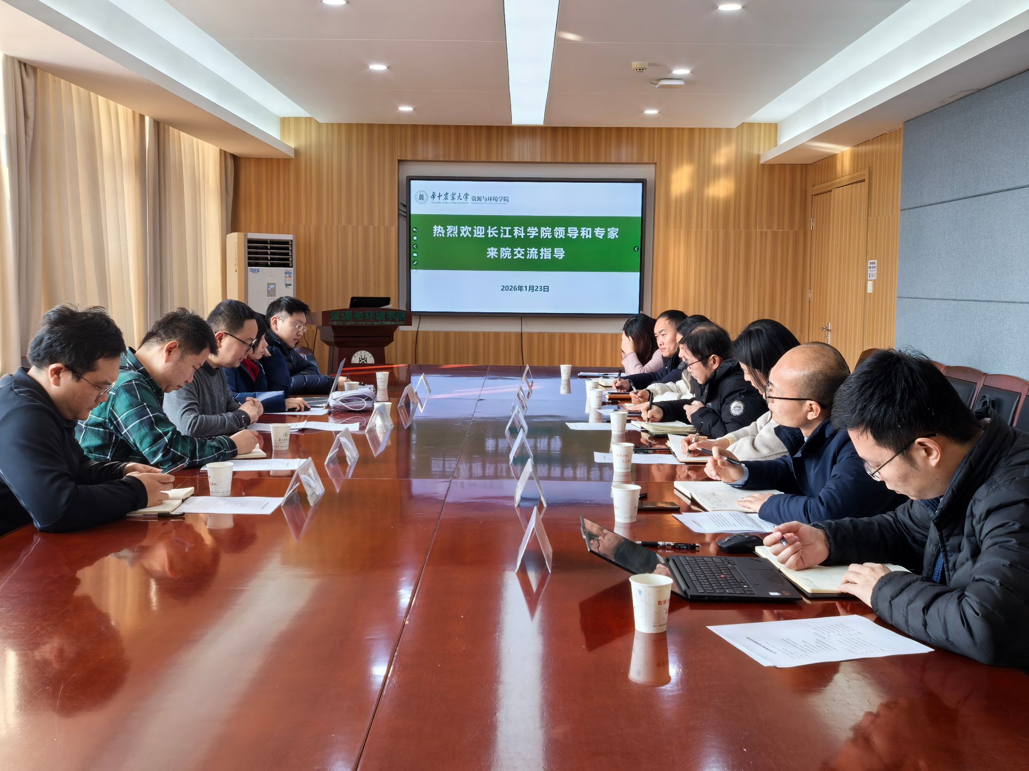 在交流环节中,双方围绕人才培养、科研项目申报以及社会服务等议题展开了深入研讨,聚焦丹江口水库水质安全保障、长江流域崩岗治理、水库消落带生态修复以及湖库水质高光谱遥感监测技术等科研领域项目申报达成了初步合作意向。