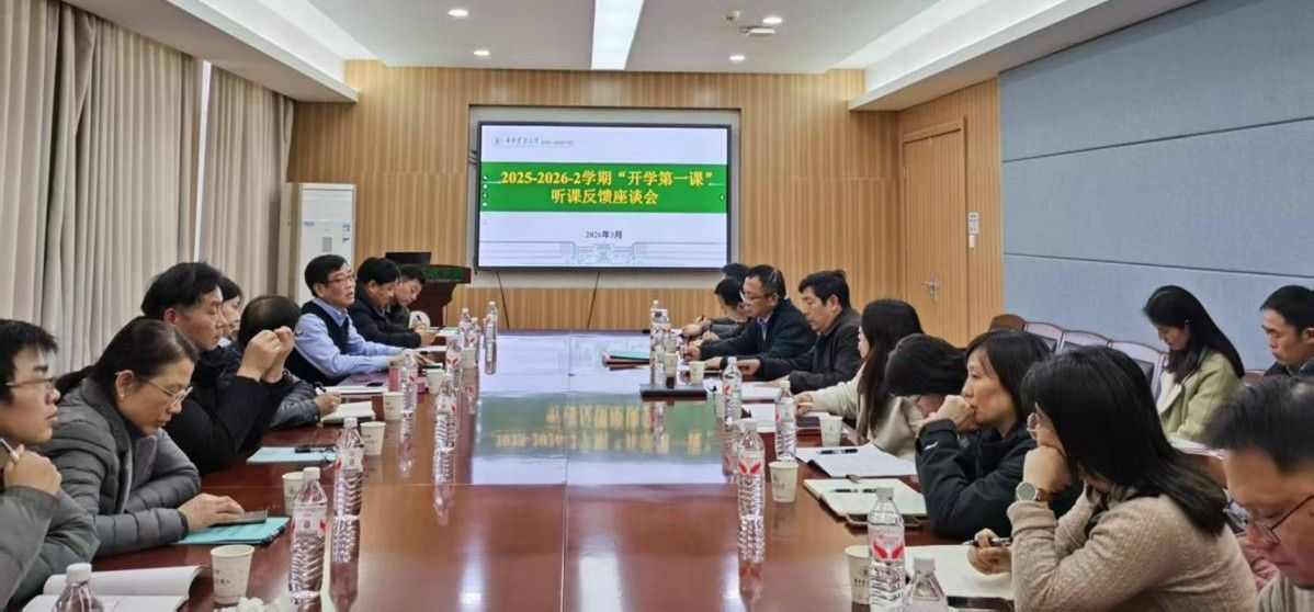 3月2日下午,我院在主楼315会议室召开2026年春季学期“开学第一课”听课反馈座谈会。校党委常委、副校长郭刚奇,党委教师工作部(教师发展中心)部长郑学刚,学院领导班子成员、本科教学巡视员、各系及专业负责人、教学团队负责人、青年教师代表及授课教师等30人参加会议,会议由学院副院长石磊主持。