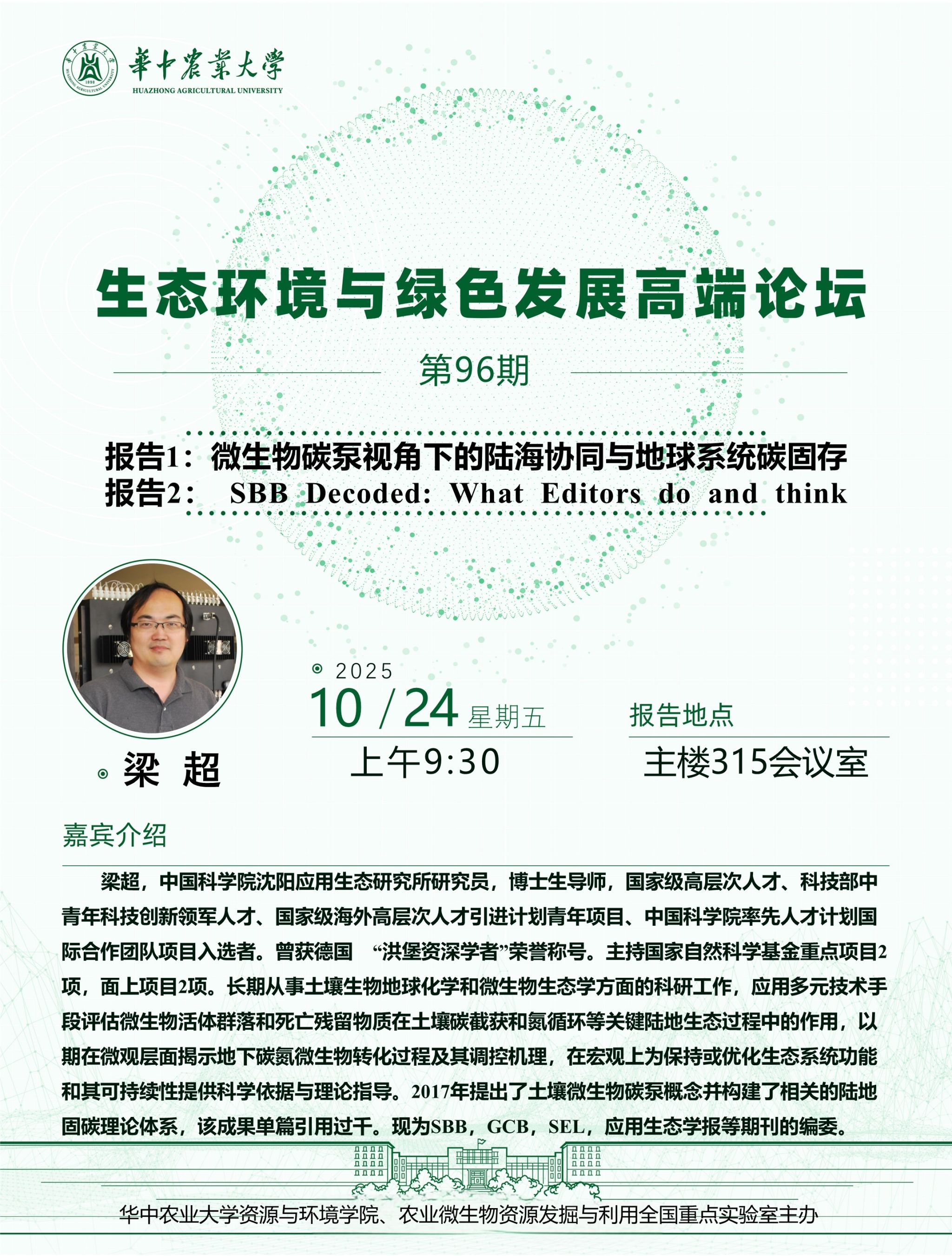 【高端论坛】第96期:微生物碳泵视角下的陆海协同与地球系统碳固存&SBB Decoded: What Editors do and think