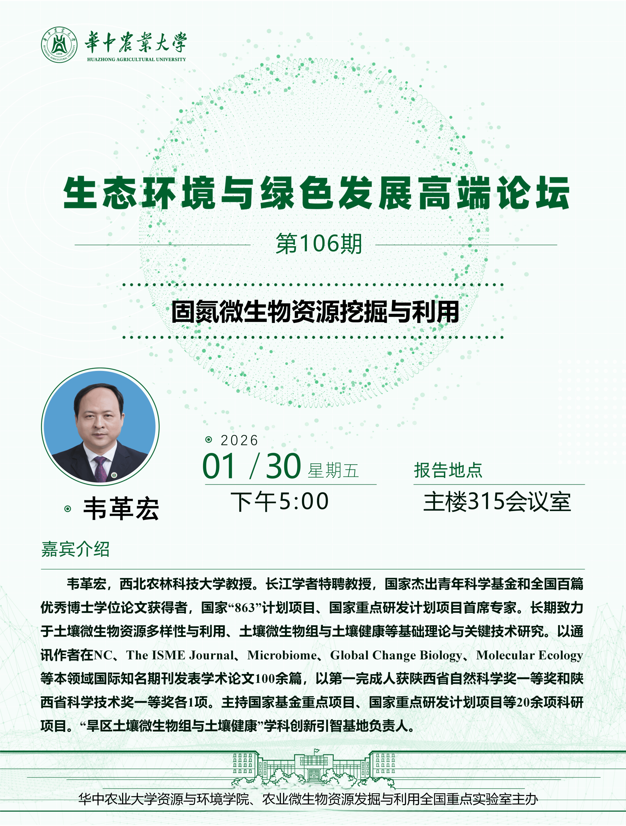 【高端论坛】第106期:固氮微生物资源挖掘与利用