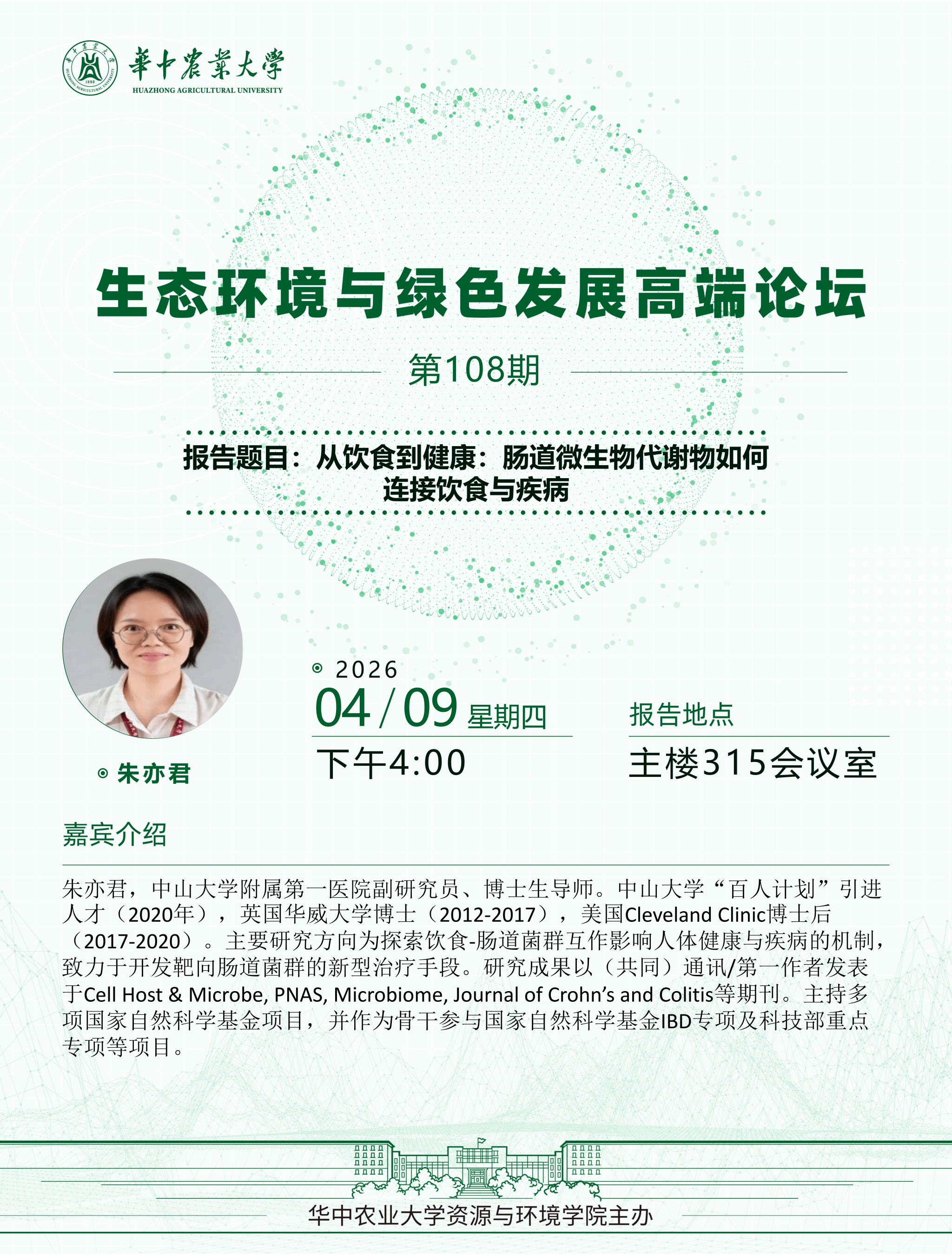 【高端论坛】第108期:从饮食到健康:肠道微生物代谢物如何连接饮食与疾病